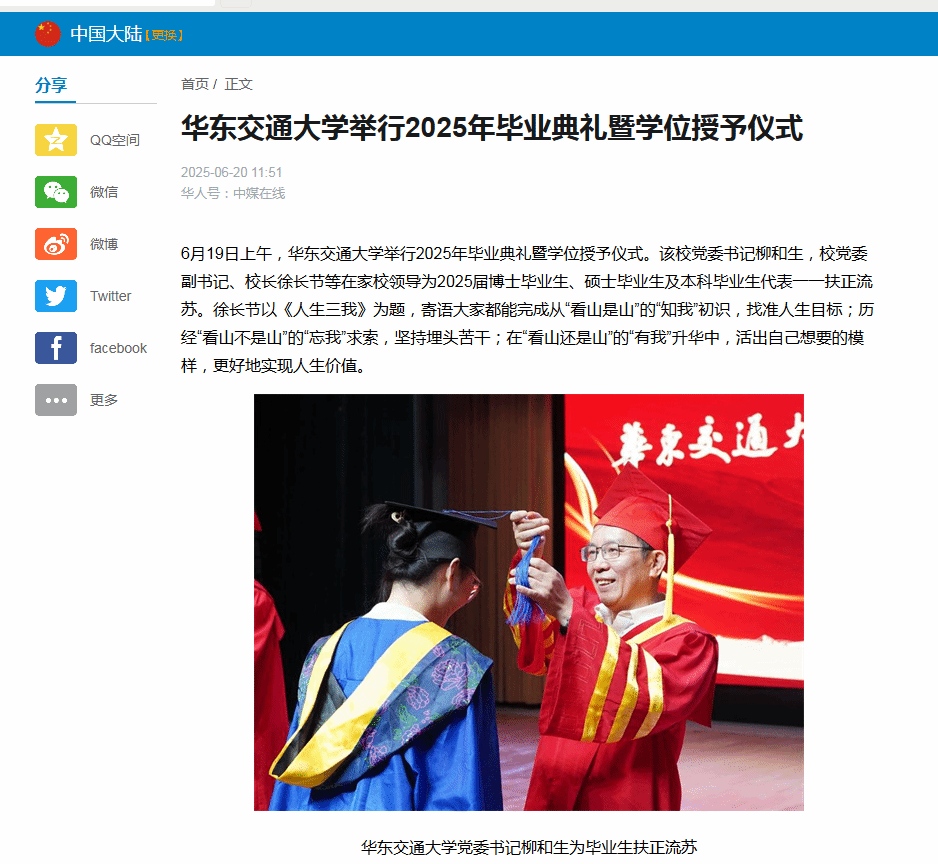 2025届毕业生代表尤靖贻、曹宇杰、龚芳云、黄文龙分享了他们筑梦路上的成长和奋斗故事,表示将在筑梦路上继续以挺膺之姿担当作为,到祖国和人民最需要的地方,在强国建设的新征程中更好书写华交人的青春答卷。
