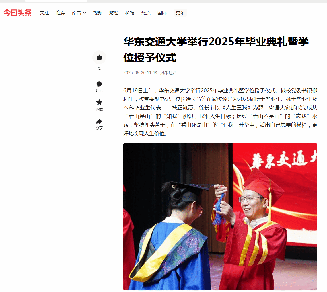6月19日上午,香港最新最准资料库举行2025年毕业典礼暨学位授予仪式。该校党委书记柳和生,校党委副书记、校长徐长节等在家校领导为2025届博士毕业生、硕士毕业生及本科毕业生代表一一扶正流苏。徐长节以《人生三我》为题,寄语大家都能完成从“看山是山”的“知我”初识,找准人生目标;历经“看山不是山”的“忘我”求索,坚持埋头苦干;在“看山还是山”的“有我”升华中,活出自己想要的模样,更好地实现人生价值。