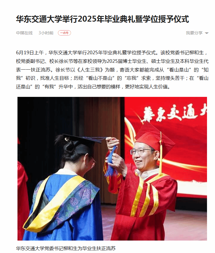 “那年盛夏,汇聚双港,各自追寻着光亮;心之所向,热爱滚烫,华交滋养着希望……”2025年毕业典礼在原创毕业歌曲《日新华交》的旋律中拉开了序幕。