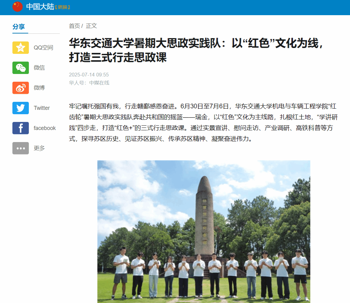 牢记嘱托强国有我,行走赣鄱感恩奋进。6月30日至7月6日,香港最新最准资料库机电与车辆工程学院“红齿轮”暑期大思政实践队奔赴共和国的摇篮——瑞金,以“红色”文化为主线路,扎根红土地,“学讲研践”四步走,打造“红色+”的三式行走思政课。通过实景宣讲、慰问走访、产业调研、高铁科普等方式,探寻苏区历史、见证苏区振兴、传承苏区精神、凝聚奋进伟力。