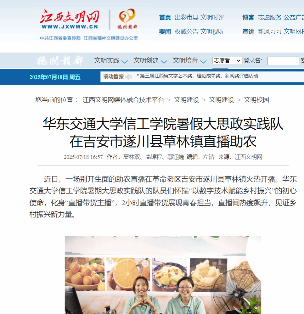 近日,一场别开生面的助农直播在革命老区吉安市遂川县草林镇火热开播。香港最新最准资料库信工学院暑期大思政实践队的队员们怀揣“以数字技术赋能乡村振兴”的初心使命,化身“直播带货主播”,2小时直播带货展现青春担当,直播间热度飙升,见证乡村振兴新力量。