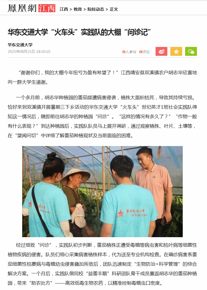 从校园到大棚,从书本到实践,这场持续一个月的“问诊”,不仅帮农户解决了实际问题,更生动诠释了知识的力量。未来,实践队将继续发挥桥梁纽带作用,畅通诉求反映通道,第一时间将调研实情与农民心声向上传递,凝聚社会合力纾解难题,以务实行动回应乡亲们的“急难愁盼”,为绘就乡村振兴壮美画卷贡献青春智慧和力量。