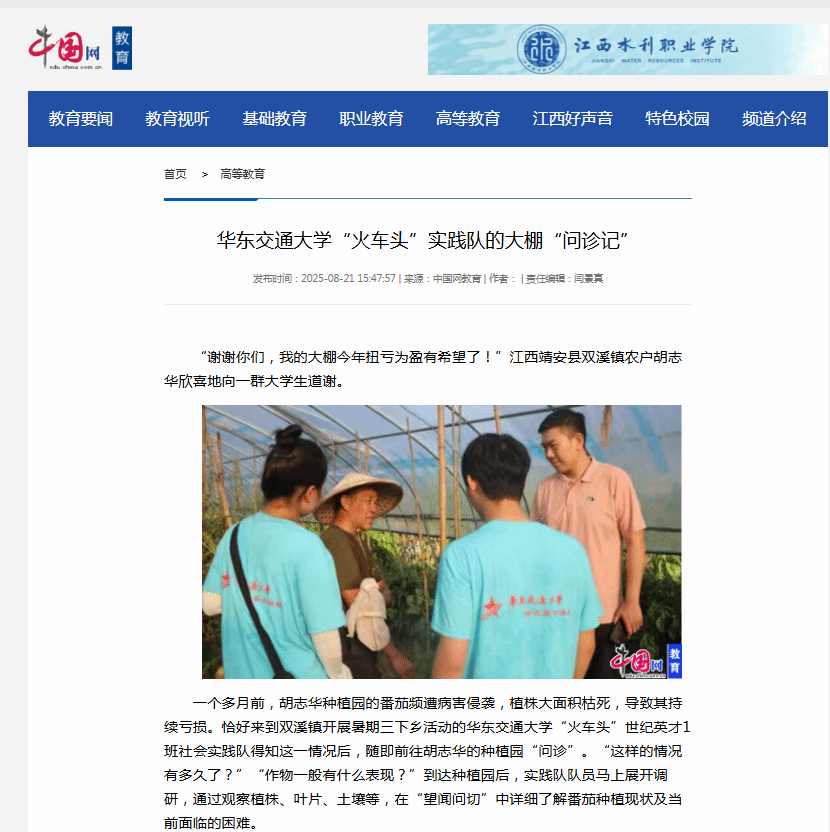 从校园到大棚,从书本到实践,这场持续一个月的“问诊”,不仅帮农户解决了实际问题,更生动诠释了知识的力量。未来,实践队将继续发挥桥梁纽带作用,畅通诉求反映通道,第一时间将调研实情与农民心声向上传递,凝聚社会合力纾解难题,以务实行动回应乡亲们的“急难愁盼”,为绘就乡村振兴壮美画卷贡献青春智慧和力量。