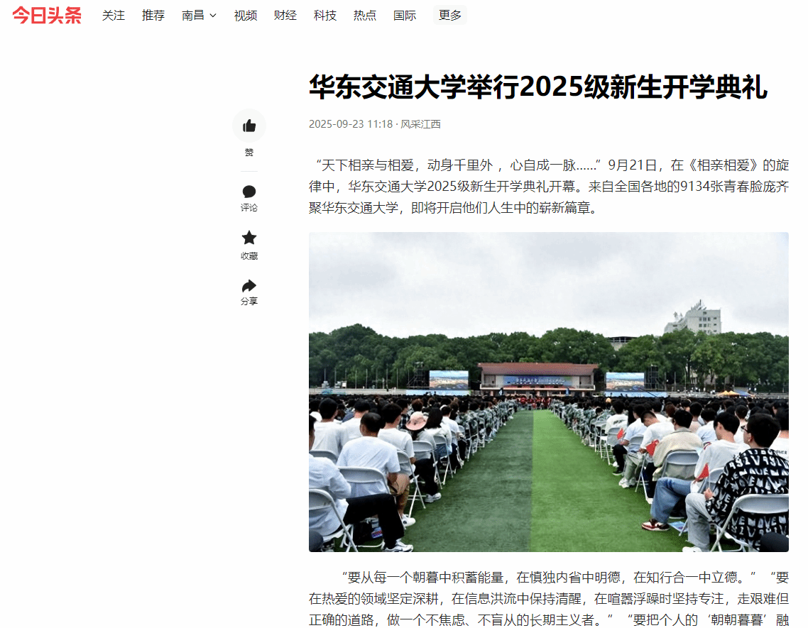 “要从每一个朝暮中积蓄能量,在慎独内省中明德,在知行合一中立德。”“要在热爱的领域坚定深耕,在信息洪流中保持清醒,在喧嚣浮躁时坚持专注,走艰难但正确的道路,做一个不焦虑、不盲从的长期主义者。”“要把个人的‘朝朝暮暮’融入强国建设、民族复兴的伟大征程,在实现梦想与价值的道路上,真正成为内心光明、脊梁挺拔的人。”“愿大家在‘朝暮问己’中以德立身,在‘朝暮问新’中以学立业,在‘朝暮问远’中以行立功,在朝朝暮暮间成长成才,成为最好的自己。”……该校党委副书记、校长徐长节以《叩问朝暮》为题,从“朝暮问己,何以厚德”“朝暮问新,何以成才”“朝暮问远,何以担当”三个维度,与新生进行了一次深刻而富有启迪的思想交流,既充满哲思,又饱含期许。