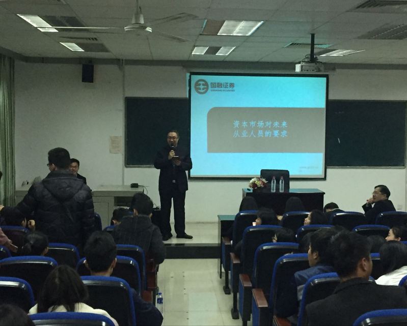3月9日晚第121期经管周末论坛如期举行。江西财经大学投资金融系本科学士,现任国融证券江西分支机构总经理的汪震宇莅临现场,为在场同学进行了一场证券行业发展的分析演讲。