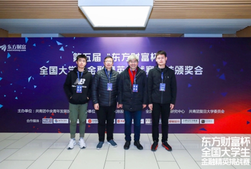 11月28日,第五届“东方财富杯”全国大学生金融精英挑战赛总结颁奖会在复旦大学举行。我校经济管理学院经济系教师、优秀领队邓小朱和优秀指导老师徐龙,一等奖获奖团队代表2018级金融专业学生范家成、余杨、董肖娜受邀参加颁奖典礼。经管学院共有2支队伍获一等奖、8支队伍获二等奖、44支队伍获三等奖,获奖总数连续5年领跑全国。