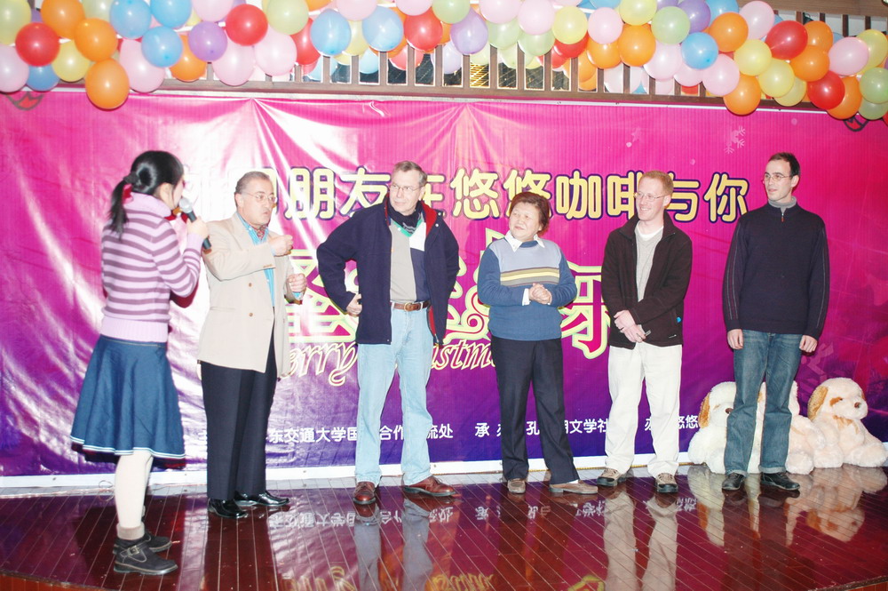 为让在我校工作的外籍教师感受节日的欢乐,12月24日,由国际合作交流处主办、孔目湖文学社承办了一台内容丰富的圣诞晚会。 晚会和谐高雅,中西结合,既有中国特色的古筝演奏、民族舞,又有西方特色的芭蕾舞、...