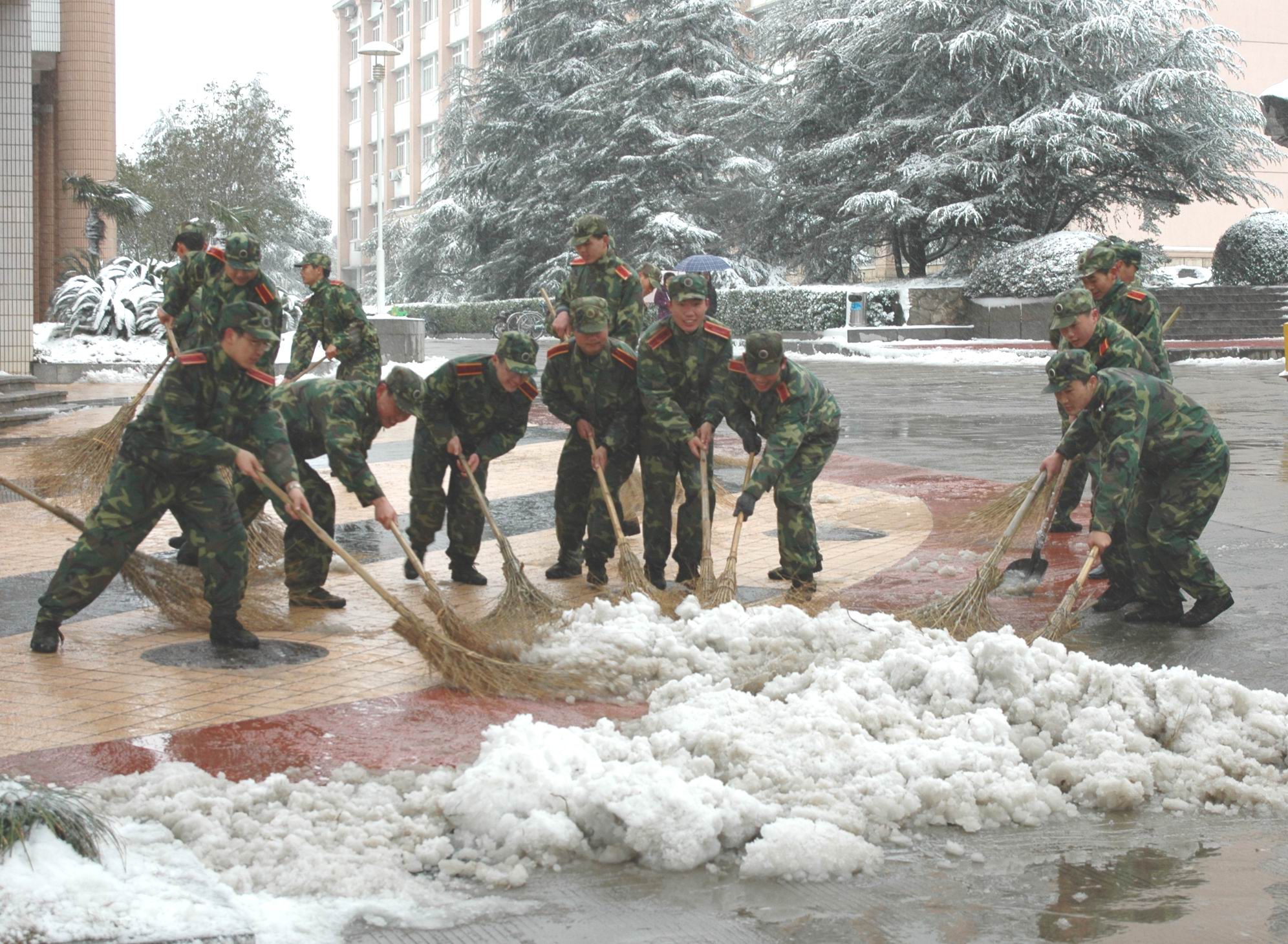 3月13日,又一场春雪悄悄降临,整个校园一片洁白。为了方便师生行走,我校国防生早晨6:50就在校园各条道路上清扫积雪。到发稿时,他们还在忙碌。有个国防生说,他们的鞋子全湿透了,但一点都不觉得冷。他们脸上是...
