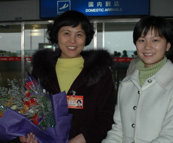 3月15日,全国人大代表胡丹老师今天回到学校。(白为民摄)