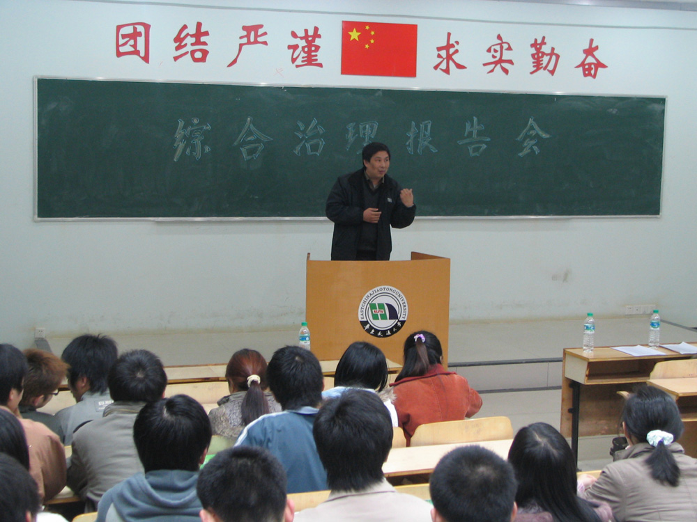 本报讯(吴正才邹禄报道)3月16日晚,电气学院在10号教学楼103和111两教室举行班级综合治理报告会。 校保卫处直属党支部书记付自生结合当前社会治安综合治理形势及校园中存在的安全隐患,对全体安全信息员提出了具...
