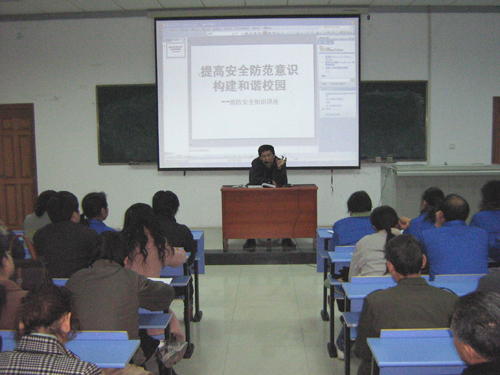 应后勤集团宿管、物业中心邀请,12月28日下午,校保卫处副处长付自生在教15栋116多媒体教室,给广大后勤员工做了一场有关消防安全知识的讲座。 讲座通过影片《火灾警示录》中一件件鲜活、惨重的事例,让大家明白了...