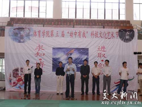 5月12日下午,体育学院第五届“动中有我”科技文化艺术节开幕式在南区体育馆举行。院党总支书记江根金、副书记阳国诚、校团委书记石初军、院团总支书记王朗及兄弟学院团总支书记等出席。 石初军致开幕辞。他首先肯...